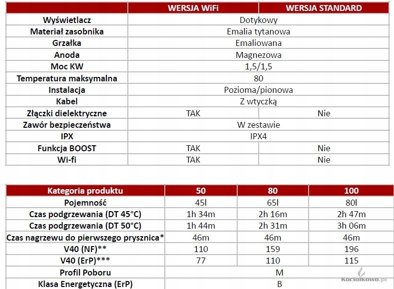 - Zabezpieczenia: przed przegrzaniem, włączeniem „na sucho” i zamarzaniem
