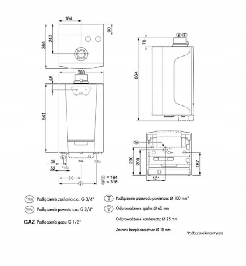 Możliwość pracy z gazem ziemnym lub propanem bez konieczności przezbrojenia. Kompatybilność z wieloma systemami odprowadzania spalin – poziomymi, pionowymi i zbiorczymi.