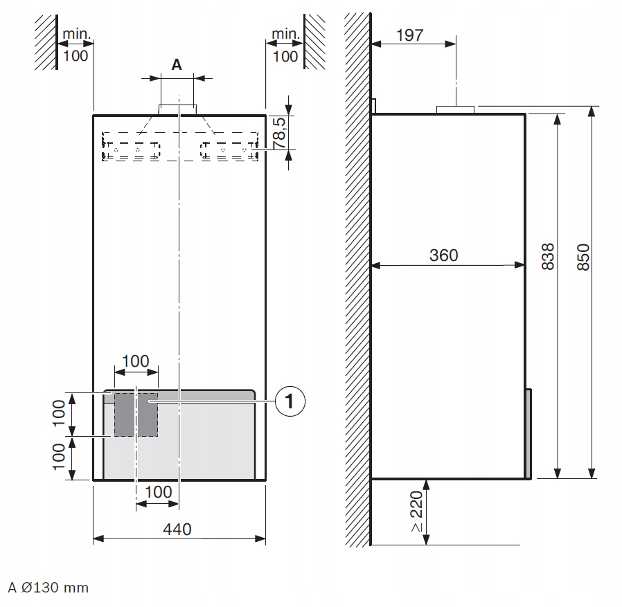 - Średnica przyłącza spalin: 130 mm