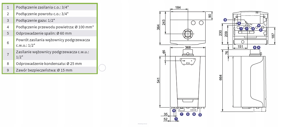 - Typ: Kocioł gazowy kondensacyjny, jednofunkcyjny
