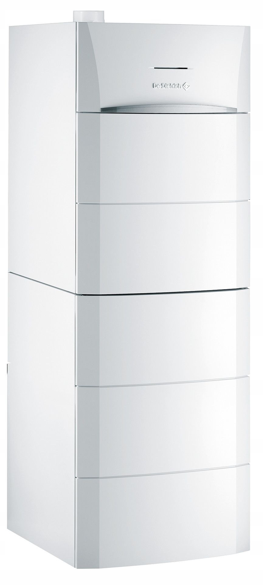 Stojący, kondensacyjny kocioł gazowy z wężownicowym podgrzewaczem CWU 160 l i sterowaniem Diematic iSystem. Dwufunkcyjna konstrukcja umożliwia jednoczesne ogrzewanie pomieszczeń i efektywne przygotowanie ciepłej wody użytkowej – idealny wybór dla domów jednorodzinnych o średnim i dużym zapotrzebowaniu.