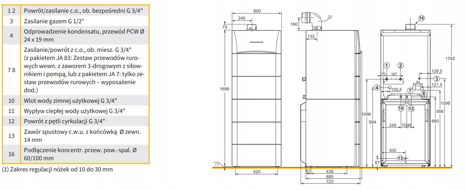 - Palnik: ze stali nierdzewnej, modulujący (22–100%)