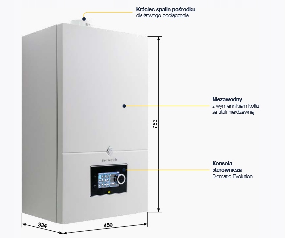 Dzięki obsłudze zdalnej przez Wi-Fi oraz możliwości współpracy z zasobnikiem c.w.u., model ten doskonale sprawdzi się w systemach nowoczesnych i energooszczędnych instalacji grzewczych.